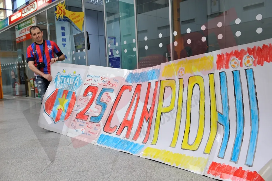 FOTO: Primire surpriză pentru steliști, la Cluj. Reghe și jucătorii au făcut deja pozele de campioni