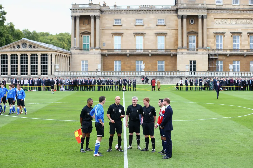 FOTO: Primul meci de fotbal jucat la Palatul Buckingham. Prințul William: „Dacă spargeți vreo fereastră, răspundeți în fața Reginei!”
