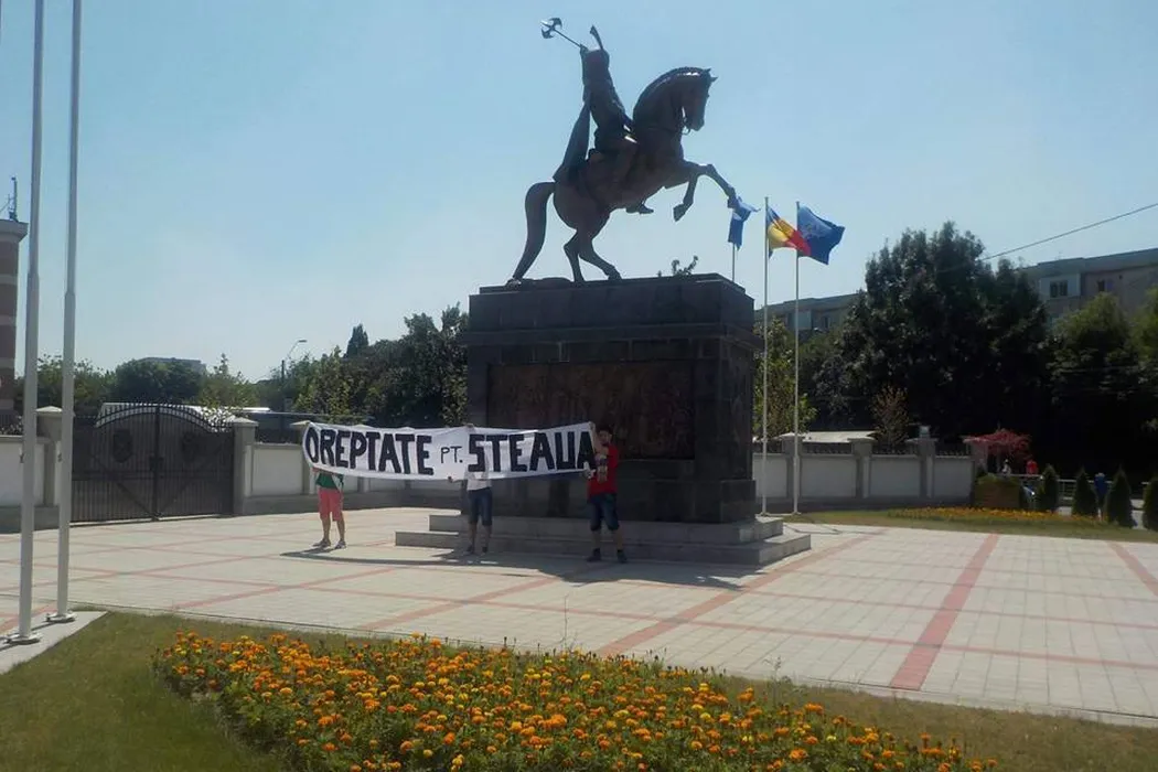 FOTO | Protest în tot Bucureștiul. Fanii Stelei au afișat bannere și în fața porții lui Gigi Becali: „Dreptate pentru Steaua”