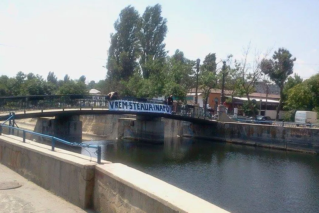 FOTO | Protest în tot Bucureștiul. Fanii Stelei au afișat bannere și în fața porții lui Gigi Becali: „Dreptate pentru Steaua”