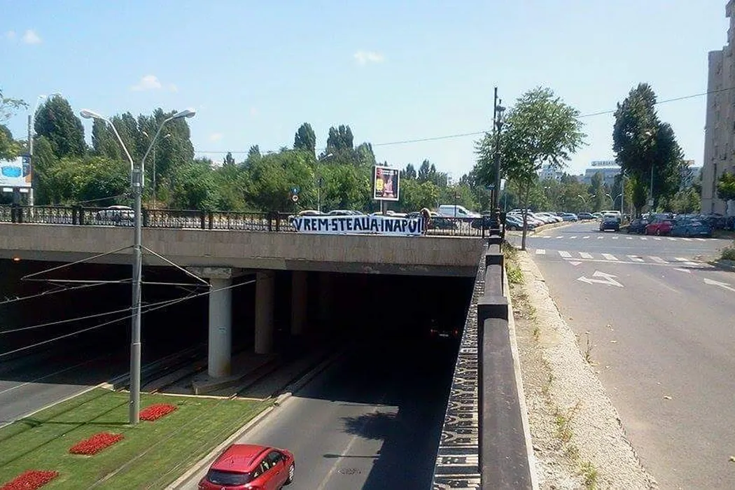FOTO | Protest în tot Bucureștiul. Fanii Stelei au afișat bannere și în fața porții lui Gigi Becali: „Dreptate pentru Steaua”