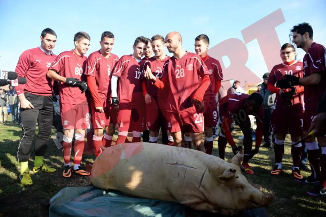 FOTO – Rapidiștii au sărbătorit primul loc în Seria I la pomana porcului! VIDEO – Moldovan s-a apucat de cântat la eveniment