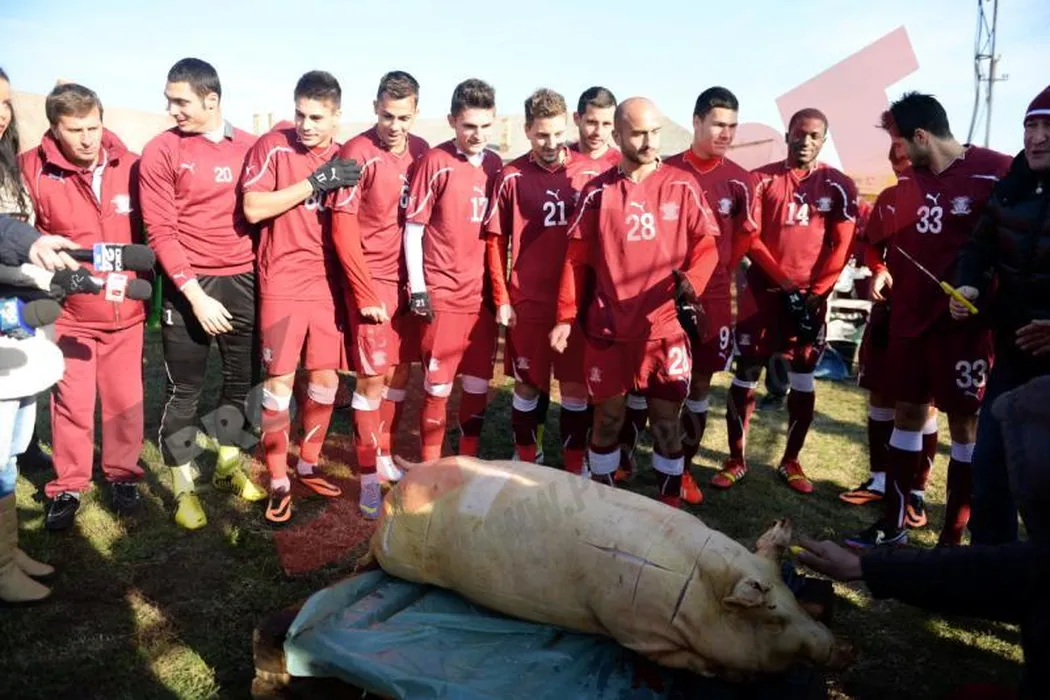 FOTO – Rapidiștii au sărbătorit primul loc în Seria I la pomana porcului! VIDEO – Moldovan s-a apucat de cântat la eveniment