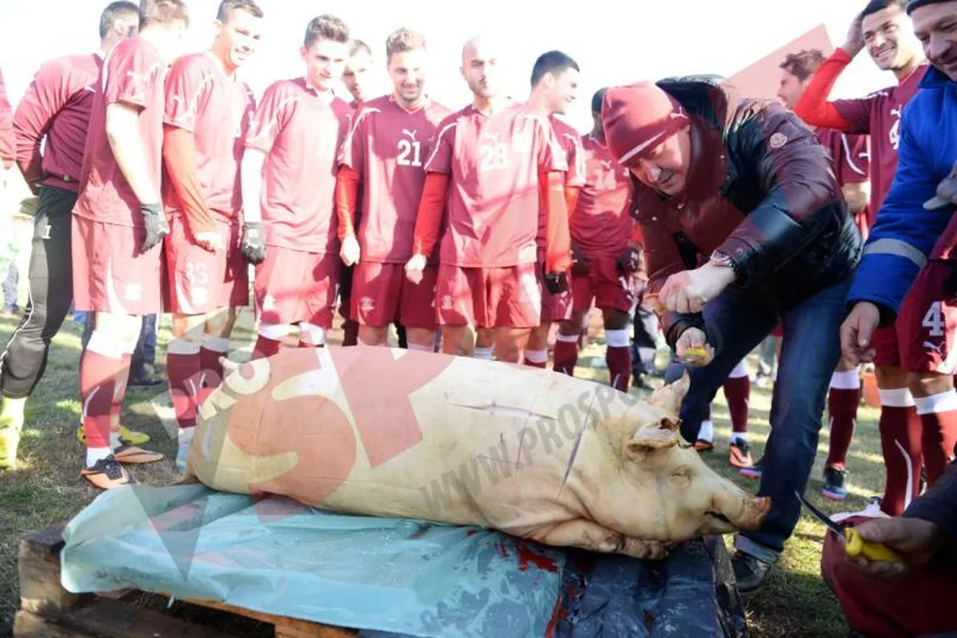 FOTO – Rapidiștii au sărbătorit primul loc în Seria I la pomana porcului! VIDEO – Moldovan s-a apucat de cântat la eveniment