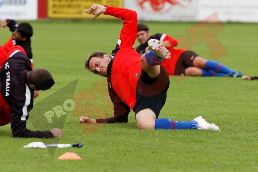 FOTO** Raul Rusescu, sărbătorit la antrenamentul Stelei! Cum a reacționat Reghe