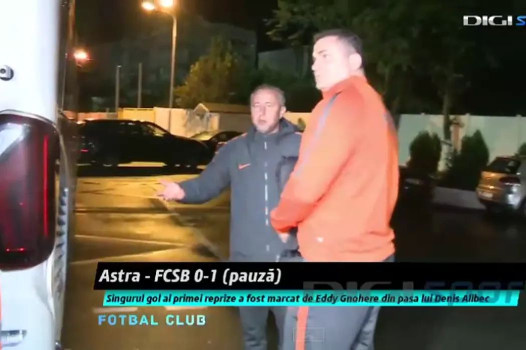 FOTO | Reghecampf, surprins în timp ce încerca să-i dea indicații secundului la pauza meciului. Reacția tehnicianului FCSB când a văzut camerele