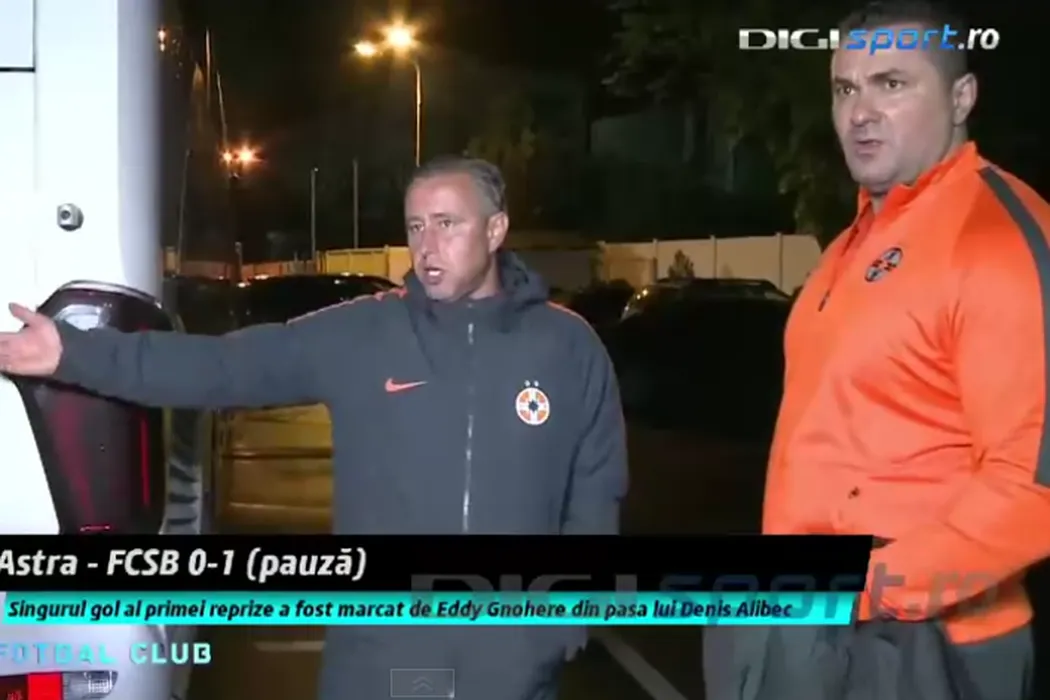 FOTO | Reghecampf, surprins în timp ce încerca să-i dea indicații secundului la pauza meciului. Reacția tehnicianului FCSB când a văzut camerele