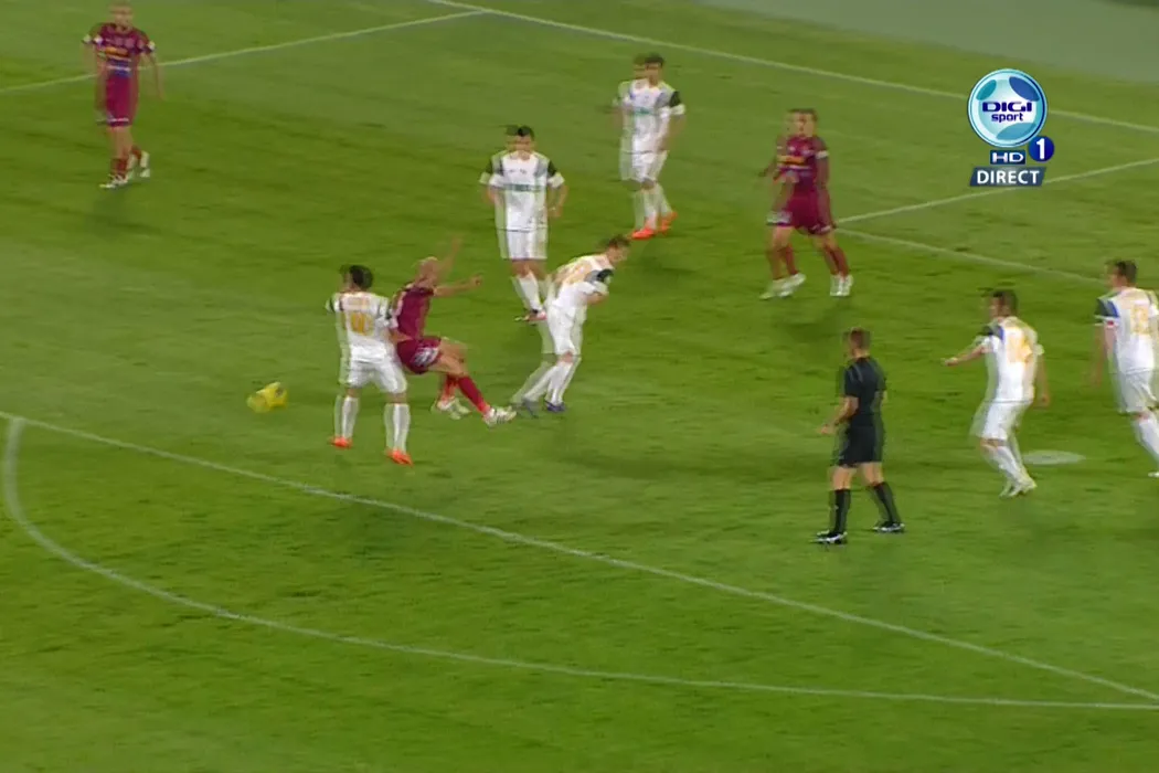 FOTO Scânteia care a declanșat SCANDALUL pe Cluj Arena!** Tudor a dat penalty la o fază în care Mureșan cade în careu după un luft