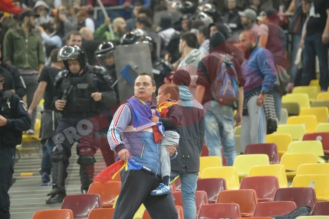 FOTO | Scene șocante pe National Arena. Un fan bolnav de inimă a fost bătut crunt de angajații BGS, chiar sub ochii fiicei sale de 14 ani: „Au bătut copii, femei și bătrâni, ne-au luat la rând”. Cum arată agresorul