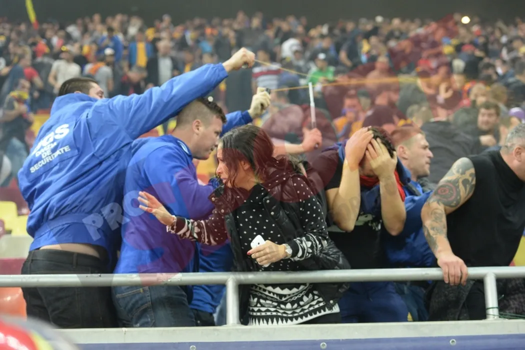 FOTO | Scene șocante pe National Arena. Un fan bolnav de inimă a fost bătut crunt de angajații BGS, chiar sub ochii fiicei sale de 14 ani: „Au bătut copii, femei și bătrâni, ne-au luat la rând”. Cum arată agresorul