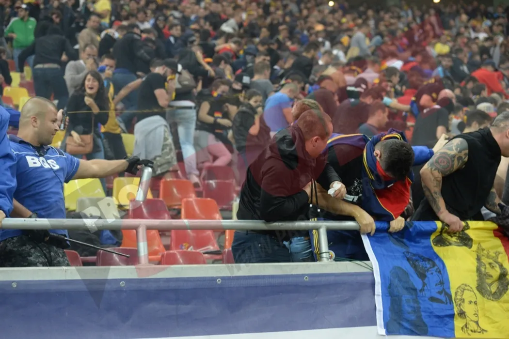 FOTO | Scene șocante pe National Arena. Un fan bolnav de inimă a fost bătut crunt de angajații BGS, chiar sub ochii fiicei sale de 14 ani: „Au bătut copii, femei și bătrâni, ne-au luat la rând”. Cum arată agresorul