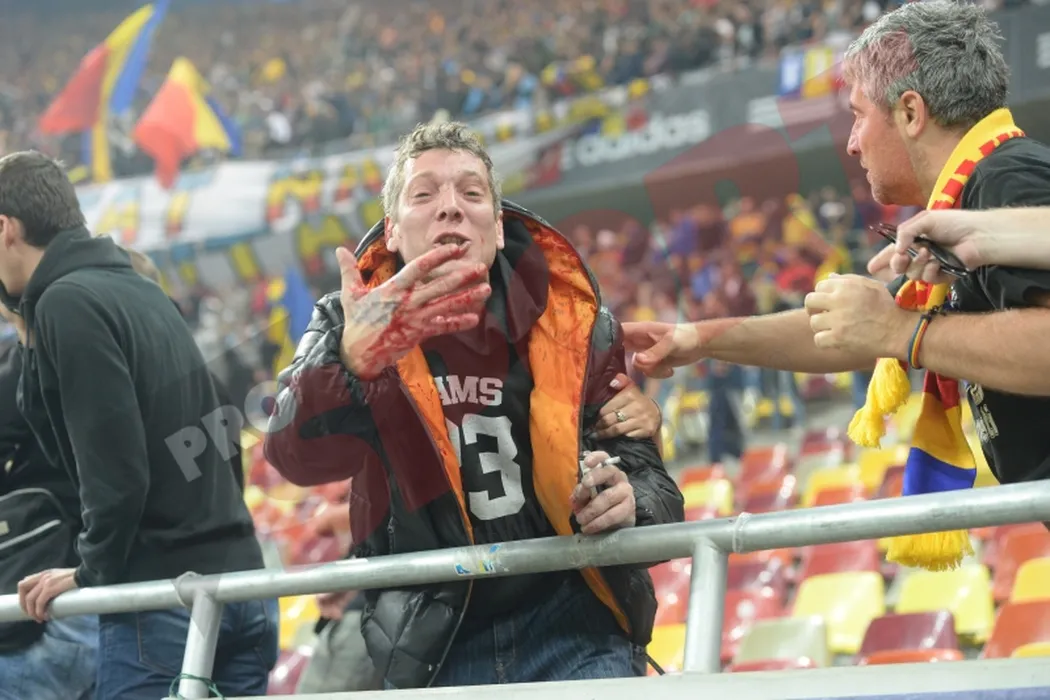 FOTO | Scene șocante pe National Arena. Un fan bolnav de inimă a fost bătut crunt de angajații BGS, chiar sub ochii fiicei sale de 14 ani: „Au bătut copii, femei și bătrâni, ne-au luat la rând”. Cum arată agresorul