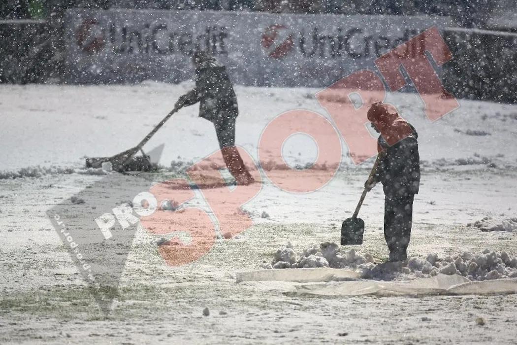FOTO – SE JOACĂ‚!** Fanii din Giulești au făcut ce n-a reușit Copos:au deszăpezit gazonul