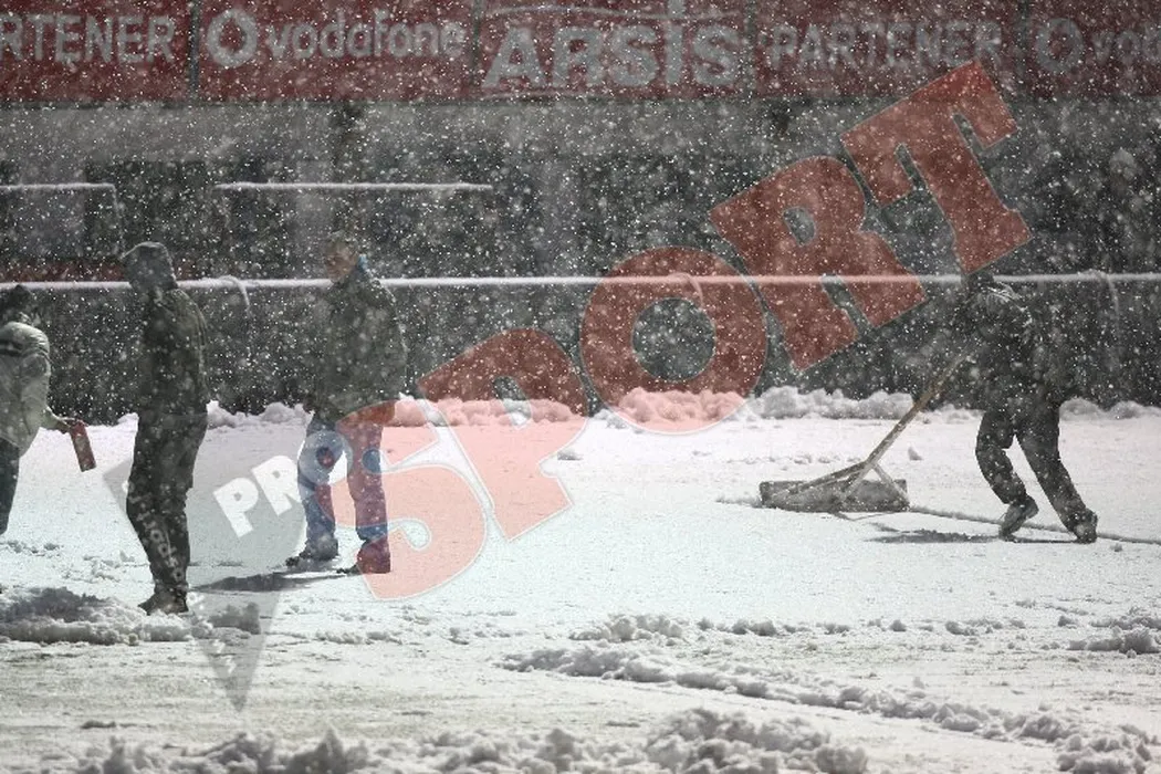 FOTO – SE JOACĂ‚!** Fanii din Giulești au făcut ce n-a reușit Copos:au deszăpezit gazonul