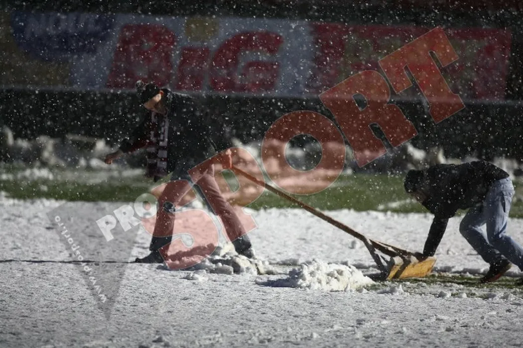 FOTO – SE JOACĂ‚!** Fanii din Giulești au făcut ce n-a reușit Copos:au deszăpezit gazonul