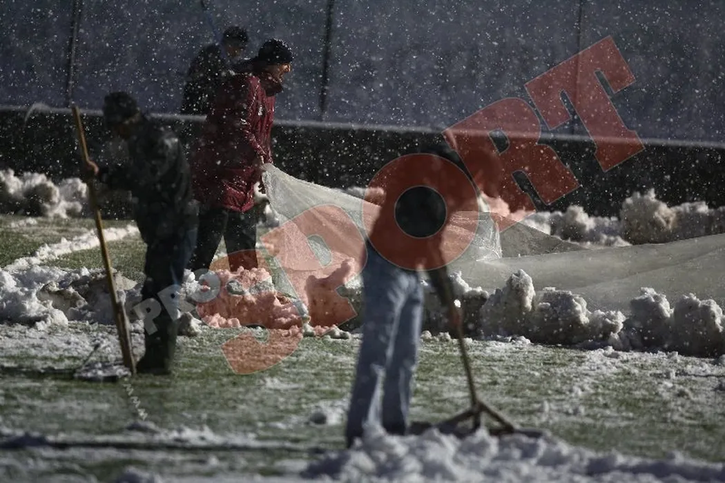 FOTO – SE JOACĂ‚!** Fanii din Giulești au făcut ce n-a reușit Copos:au deszăpezit gazonul