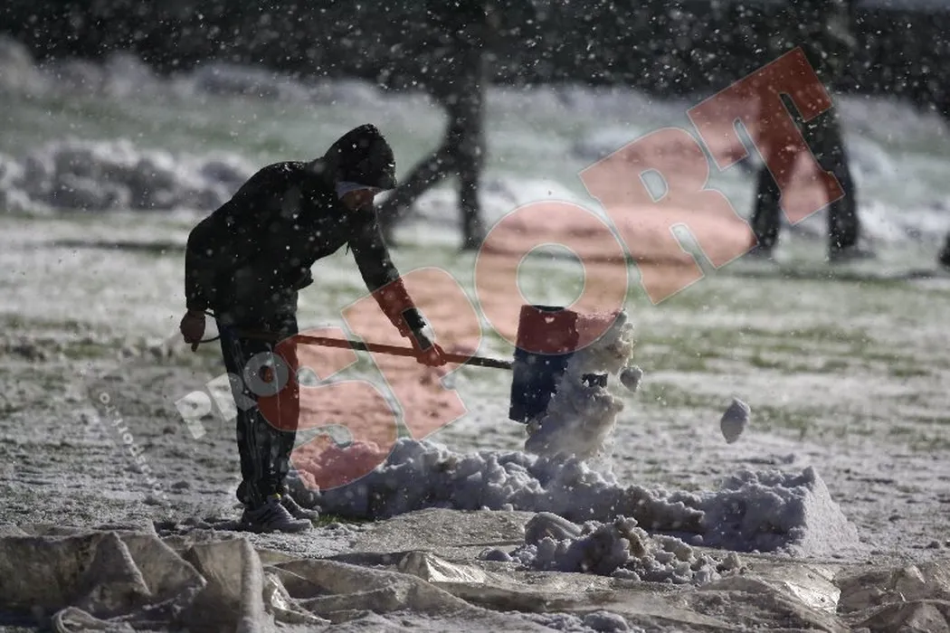 FOTO – SE JOACĂ‚!** Fanii din Giulești au făcut ce n-a reușit Copos:au deszăpezit gazonul