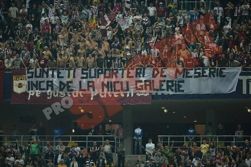 FOTO SPECTACULOS** Super coregrafii făcute de rapidiști și „câini” la finala Cupei României! Ce mesaje au afișat