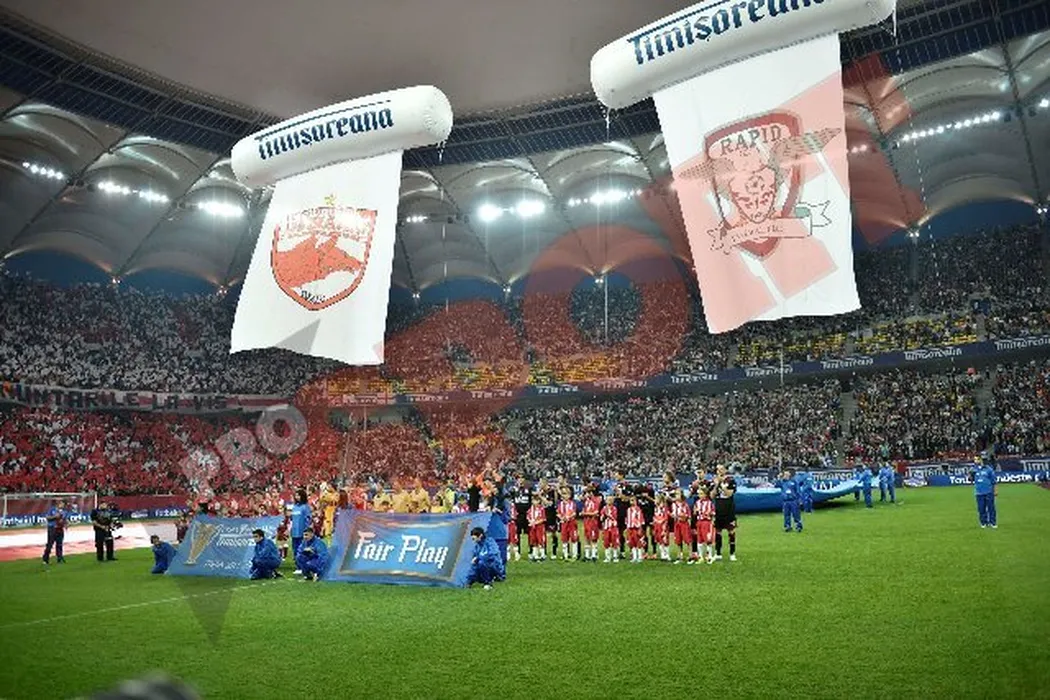 FOTO SPECTACULOS** Super coregrafii făcute de rapidiști și „câini” la finala Cupei României! Ce mesaje au afișat