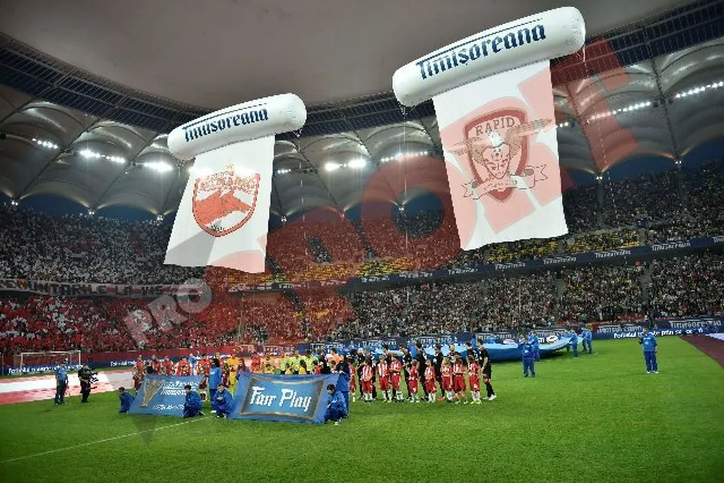 FOTO SPECTACULOS** Super coregrafii făcute de rapidiști și „câini” la finala Cupei României! Ce mesaje au afișat