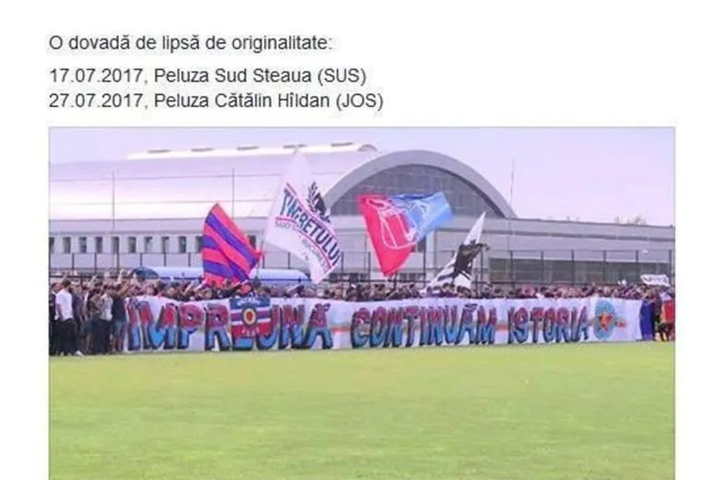 FOTO | Steaua acuză Dinamo de plagiat. Mesajul PCH de la meciul cu Bilbao, foarte apropiat de cel al Peluzei SUD de la meciul Steaua – Comprest