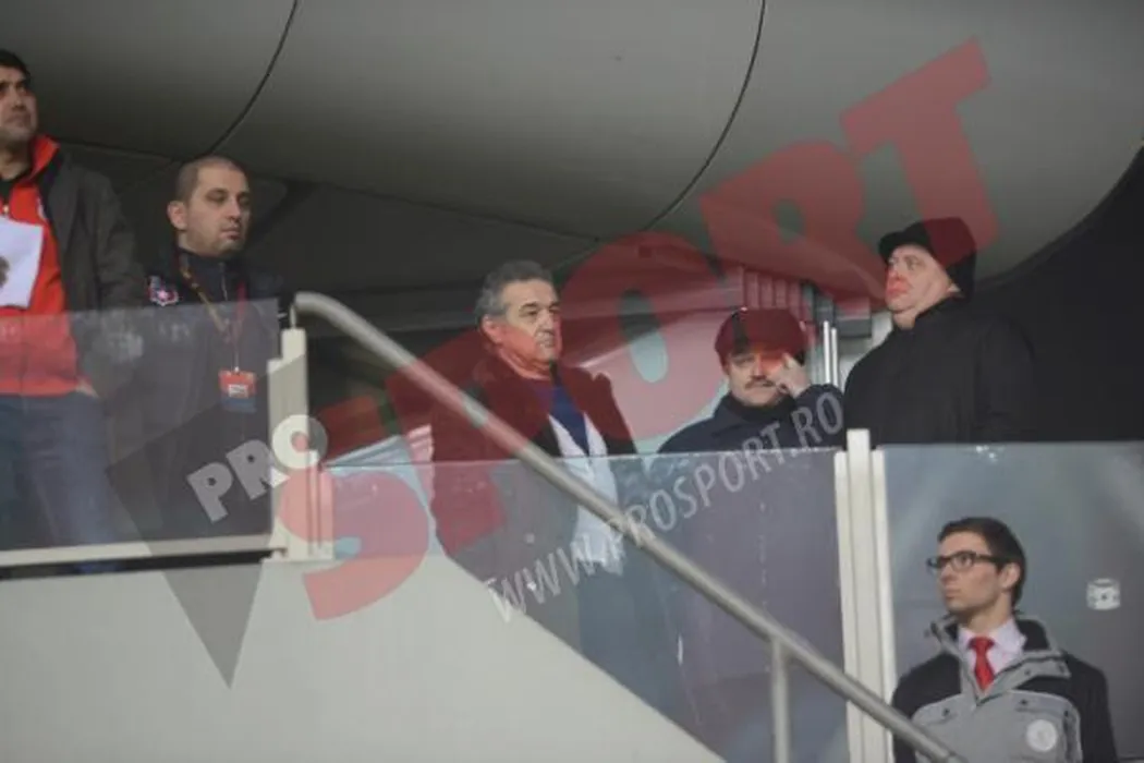FOTO: Steliștii au fost încurajați din tribune de simbolurile Ogăraru și Neșu.** Gigi Becali a fost și el la meci