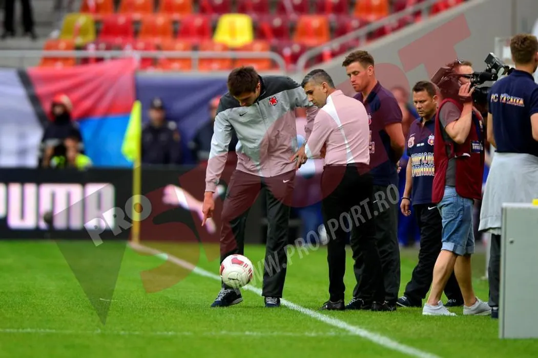 FOTO | Steliștii nu au fost lăsați să inspecteze gazonul pentru că urma să înceapă meciul Legende vs Suporteri