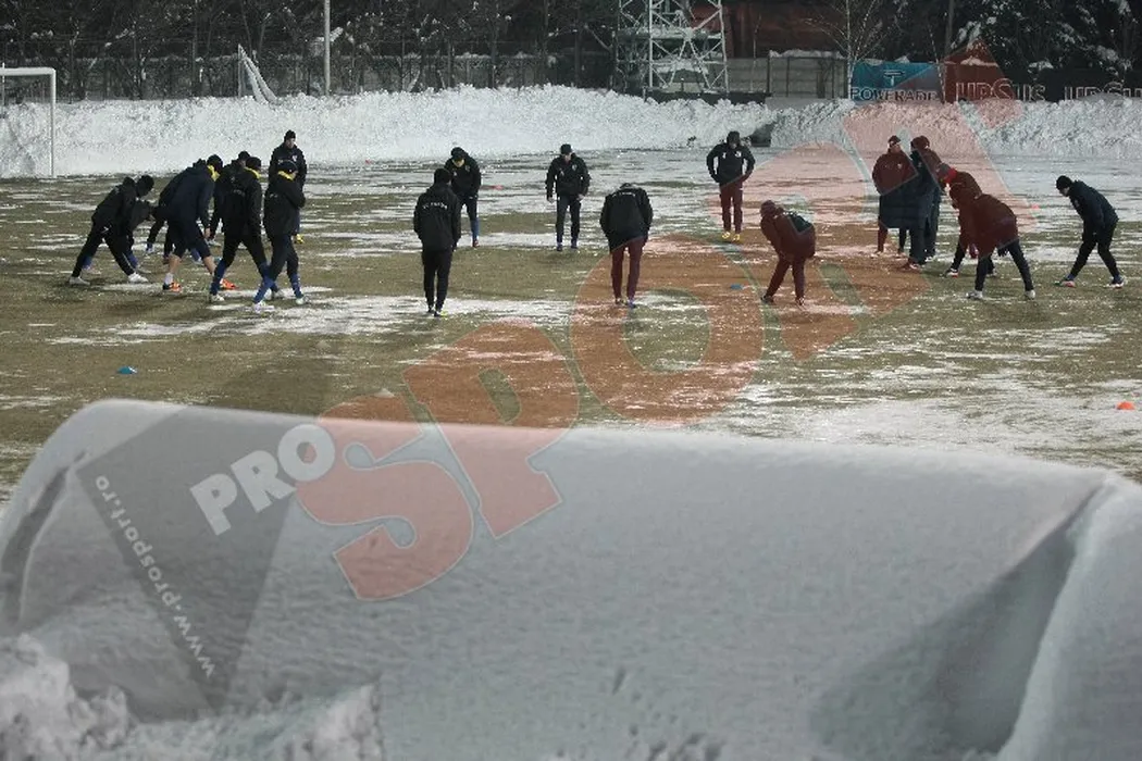 FOTO** Steliștii s-au antrenat între nămeți și pe un teren înghețat! Imagini incredibile cu Tănase&co înaintea meciului cu Twente
