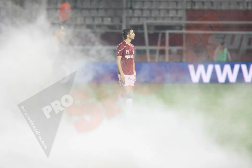 FOTO Steliștii și-au dat din nou în petec!** Meciul a fost întrerupt după ce fanii au aruncat cu petarde în teren! Galeria a fost evacuată!