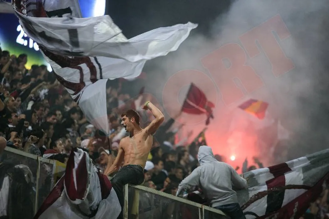 FOTO Steliștii și-au dat din nou în petec!** Meciul a fost întrerupt după ce fanii au aruncat cu petarde în teren! Galeria a fost evacuată!