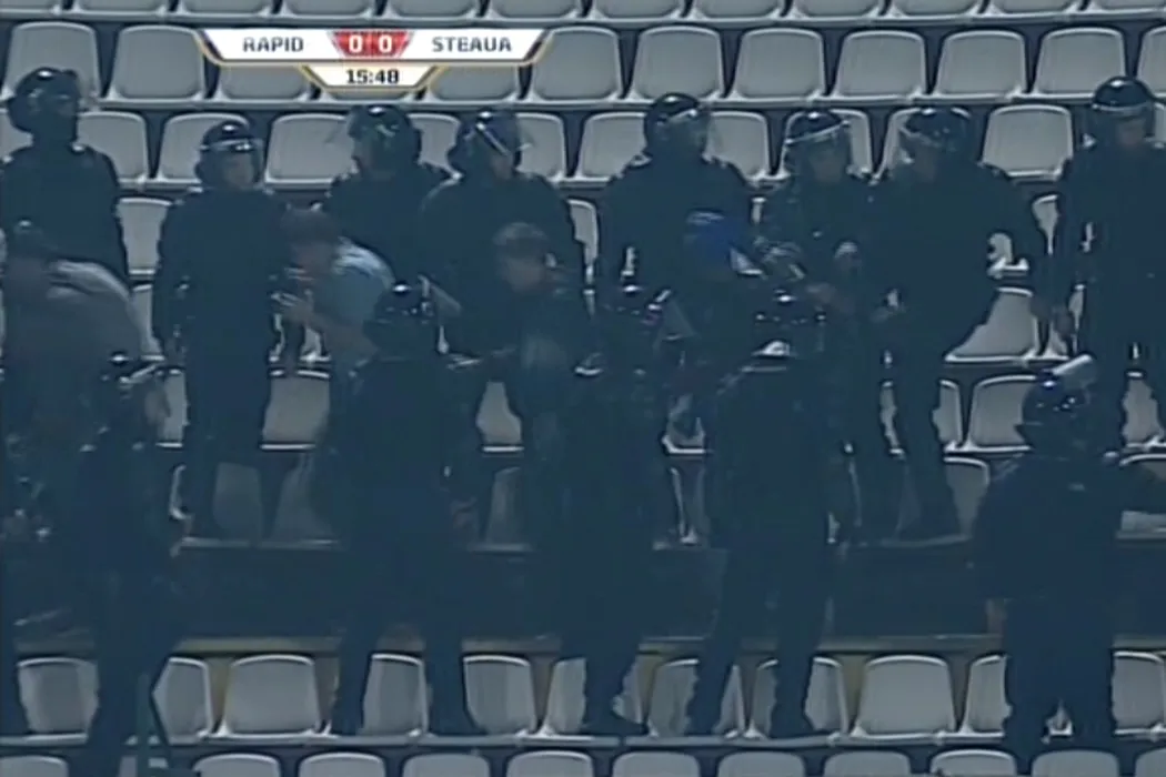 FOTO Steliștii și-au dat din nou în petec!** Meciul a fost întrerupt după ce fanii au aruncat cu petarde în teren! Galeria a fost evacuată!