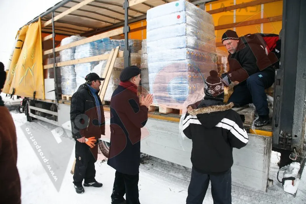 FOTO** Super Copos a făcut spectacol în Vrancea! :) A împins camionul cu alimente pentru sinistrați, după ce acesta a rămas blocat