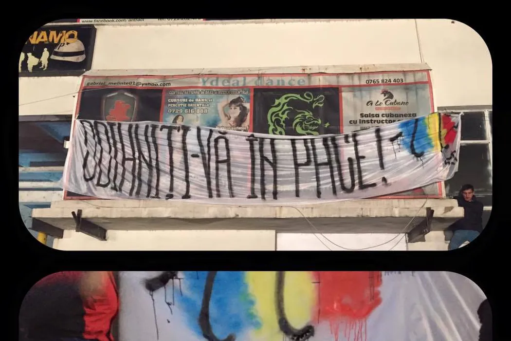FOTO | Suporterii lui Dinamo nu au rămas indiferenți! Banner-ul afișat în fața clubului în care și-au pierdut viața 30 de tineri