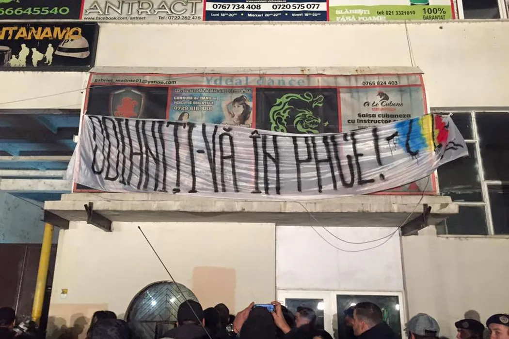 FOTO | Suporterii lui Dinamo nu au rămas indiferenți! Banner-ul afișat în fața clubului în care și-au pierdut viața 30 de tineri