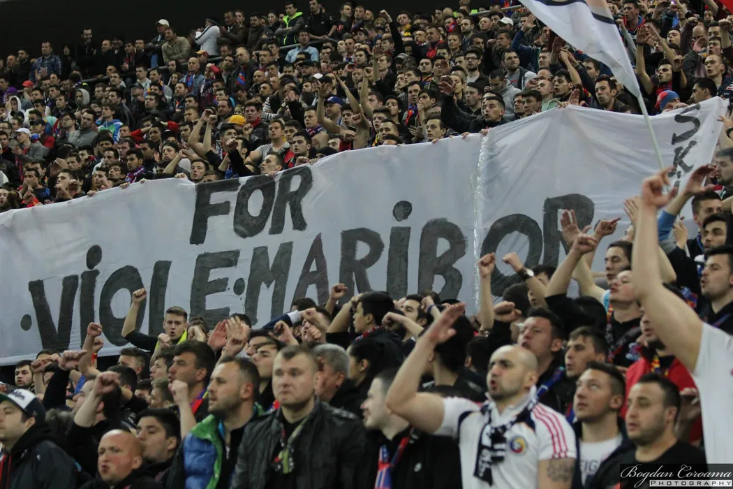 FOTO: Susținere din Slovenia. Galeria lui Maribor a afișat un mesaj în limba română prin care le-a mulțumit ultrașilor Stelei
