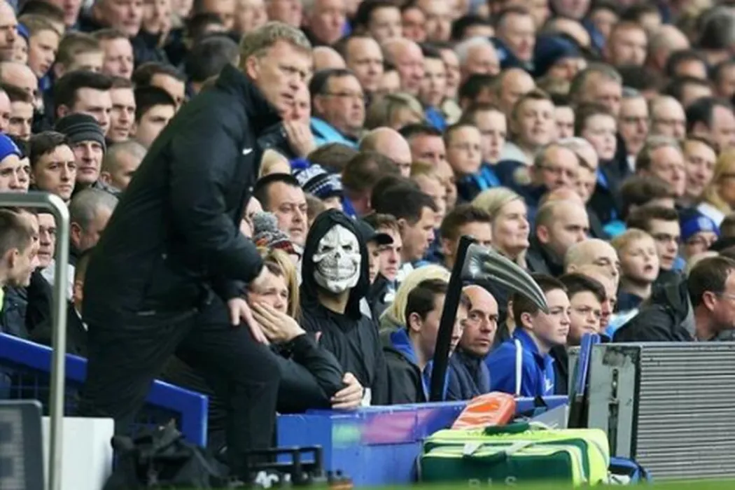 FOTO: Un fan îmbrăcat în „Moartea” s-a așezat lângă David Moyes. A fost o reclamă la o casă de pariuri