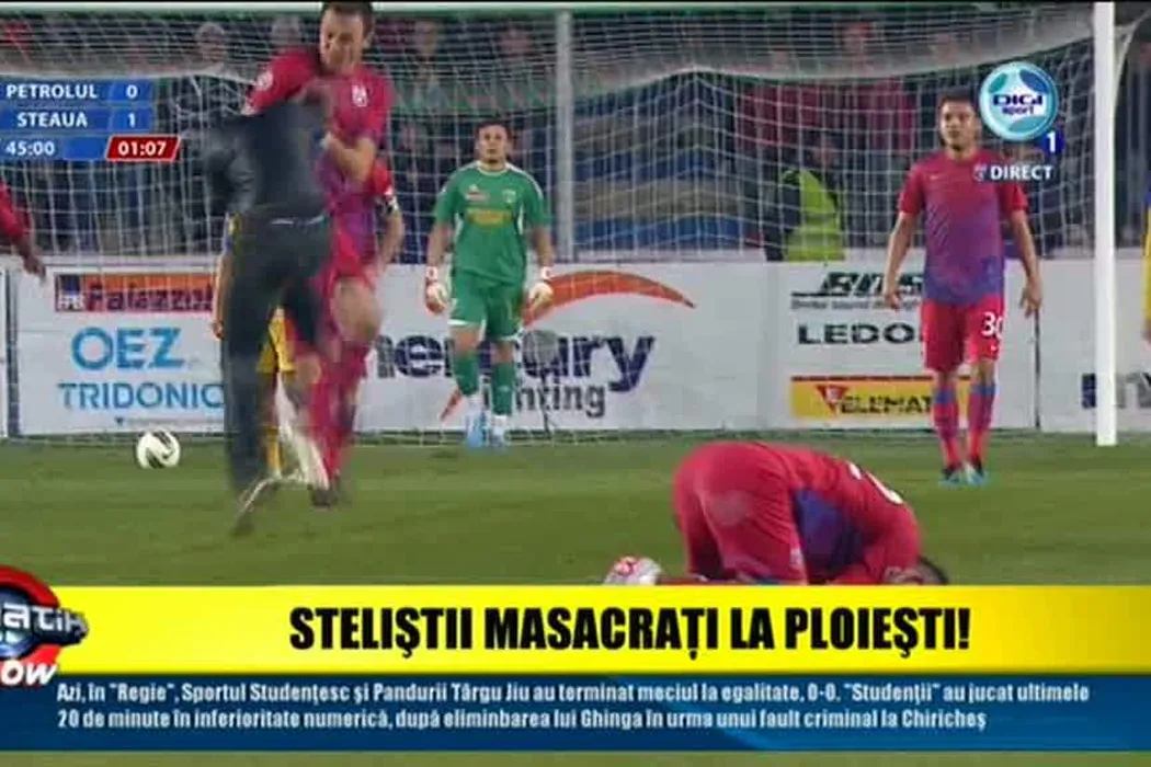FOTO & VIDEO Momente INCREDIBILE! Galamaz, făcut KO de un suporter! Steliștii s-au răzbunat și l-au bătut pe gazon! Martinovic și Stanca, eliminați! Meciul a fost suspendat