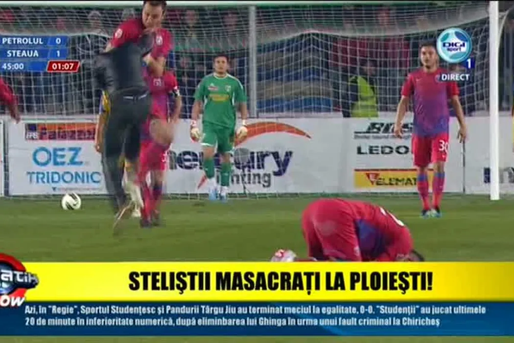 FOTO & VIDEO Momente INCREDIBILE! Galamaz, făcut KO de un suporter! Steliștii s-au răzbunat și l-au bătut pe gazon! Martinovic și Stanca, eliminați! Meciul a fost suspendat