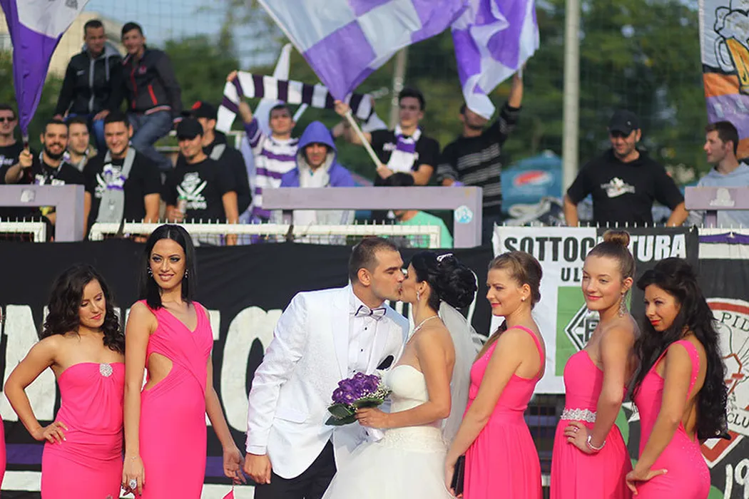 FOTO & VIDEO | Nuntă pe stadion. Portarul lui Poli a venit cu soția și domnișoarele de onoare la meci. Reacția fabuloasă a galeriei