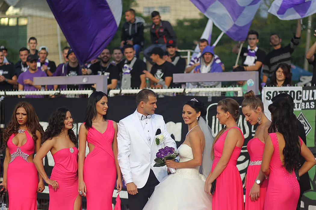 FOTO & VIDEO | Nuntă pe stadion. Portarul lui Poli a venit cu soția și domnișoarele de onoare la meci. Reacția fabuloasă a galeriei