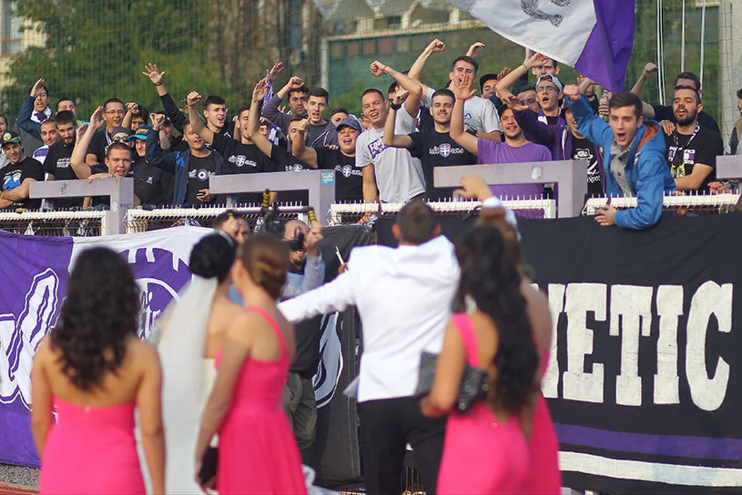 FOTO & VIDEO | Nuntă pe stadion. Portarul lui Poli a venit cu soția și domnișoarele de onoare la meci. Reacția fabuloasă a galeriei