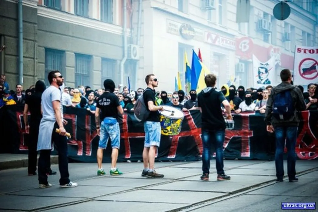 FOTO & VIDEO Ultrașii s-au bătut cu separatiștii. La Harkov, galeriile unite ale lui Dnipro și Metalist au fost atacate de un grup de persoane ce vor alipirea la Rusia