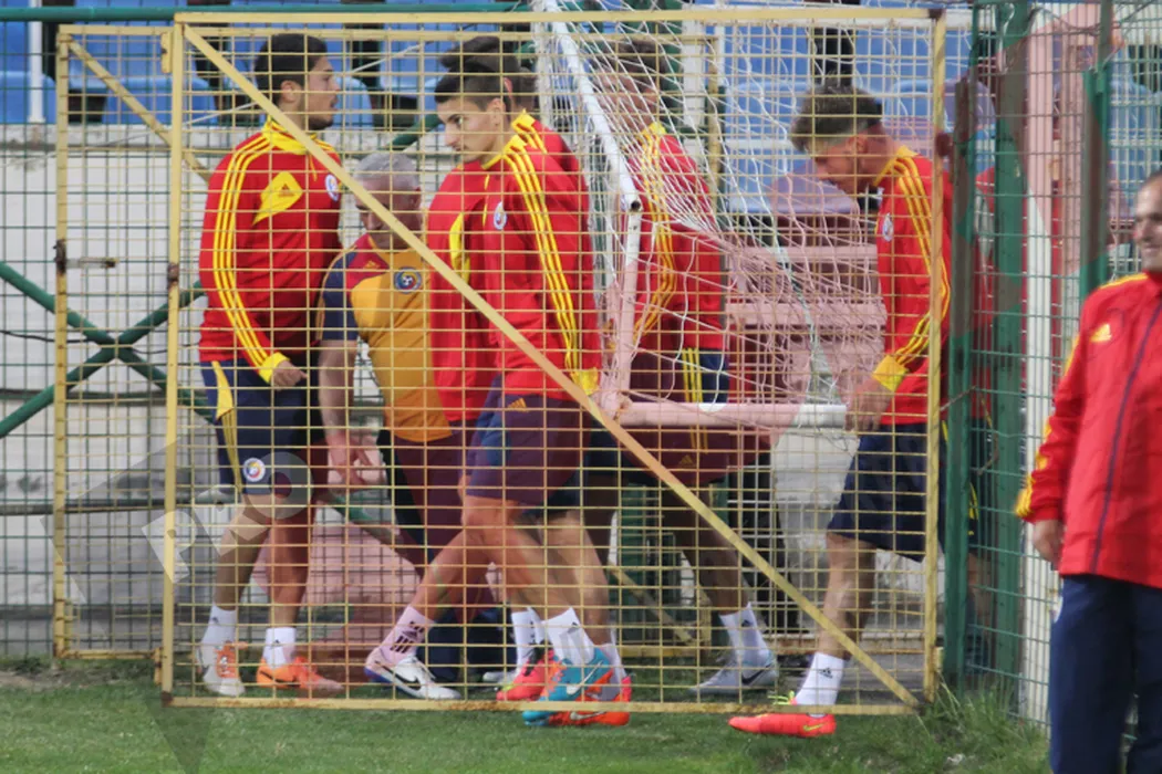FOTO | Viorel Moldovan, vedeta buzoienilor la antrenamentul naționalei de tineret. Selecționerul, solicitat de agenții de pază pentru o ședință foto