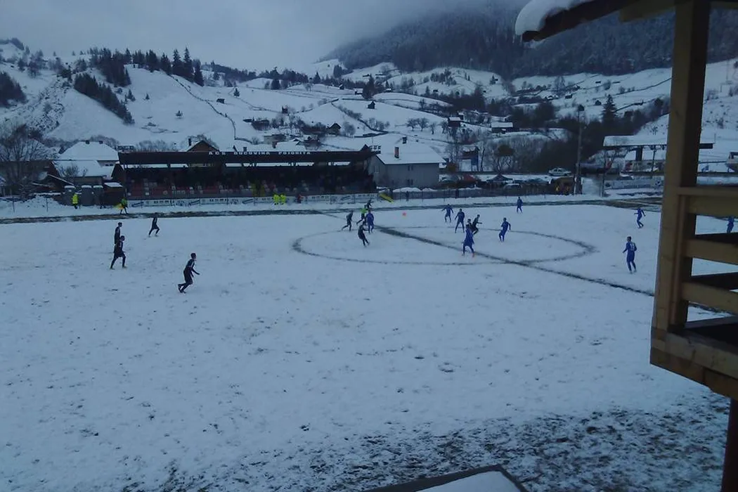 FOTO Winter is coming | Fotbal printre nămeți în Liga 2 și un teren aproape să cedeze. Se va desfășura Liga 1 conform programului, cu partide în pragul Crăciunului?