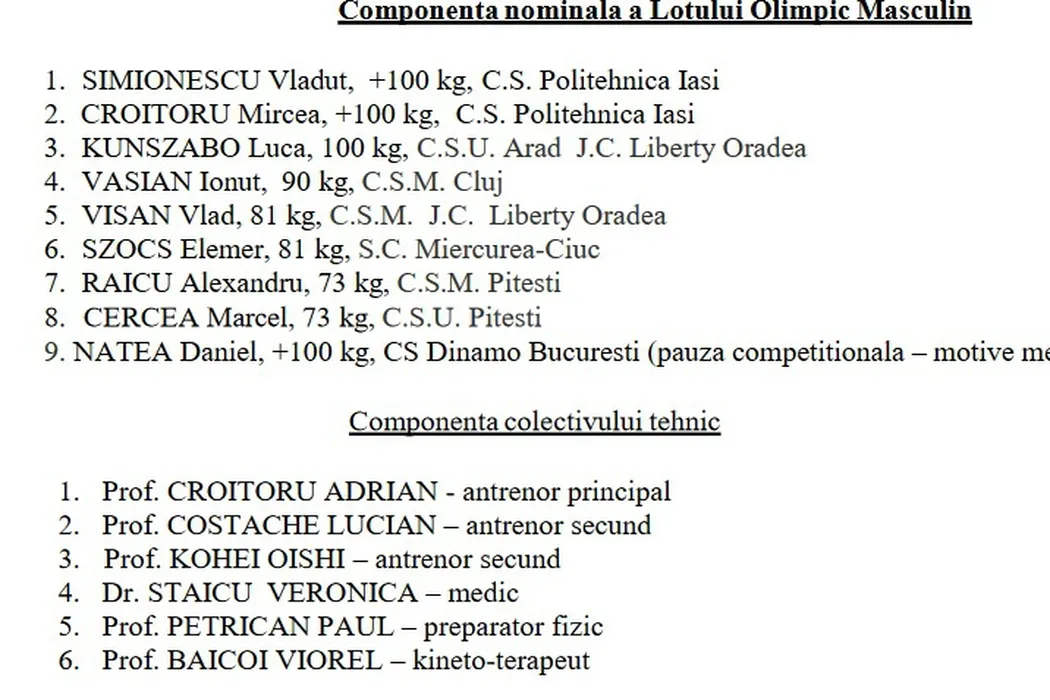 FR de Judo a aprobat componența loturilor naționale ale României și programul competițional și de pregătire pentru 2018. Comunicatul oficial
