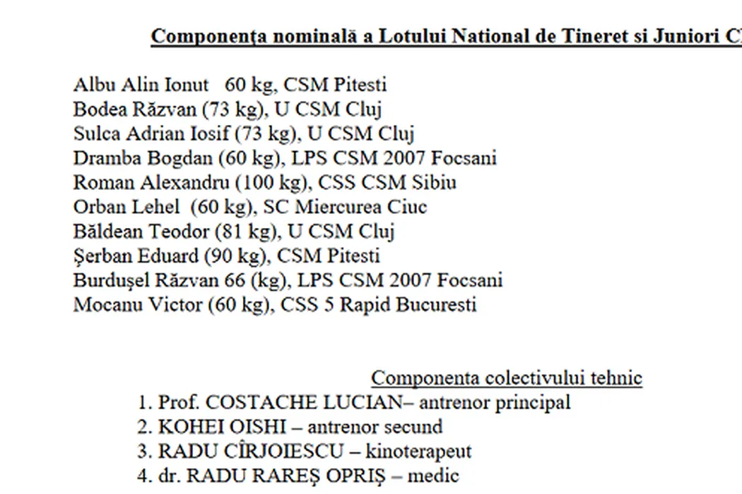 FR de Judo a aprobat componența loturilor naționale ale României și programul competițional și de pregătire pentru 2018. Comunicatul oficial
