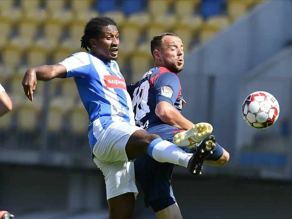 Rodny Lopes Cabral si Cristian Daniel Negut in meciul de fotbal dintre Chindia Targoviste si CSM Politehnica Iasi, contand pentru play-out-ul Ligii 1 Casa Pariurilor, disputat fara spectatori pe Stadionul Ilie Oana din Ploiesti, sambata 27 iunie 2020. © FOTO:Razvan Pasarica/SPORT PICTURES