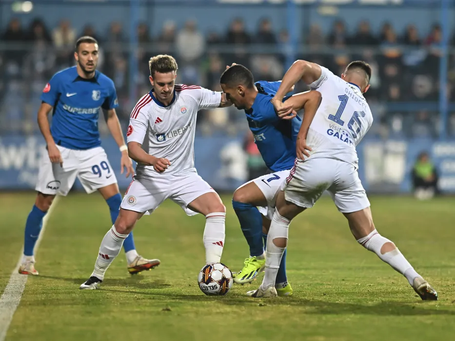 Alexandru Mihai Constantin Pop si Rivaldinho (Mosca Rivaldo Vitor Ferreira) în meciul de fotbal dintre Farul Constanta si Otelul Galati, contând pentru Superliga Superbet, desfășurat pe Stadionul central al Academiei Gheorghe Hagi din Ovidiu, sambata 24 februarie 2024. © FOTO: Răzvan PĂSĂRICĂ/SPORT PICTURES