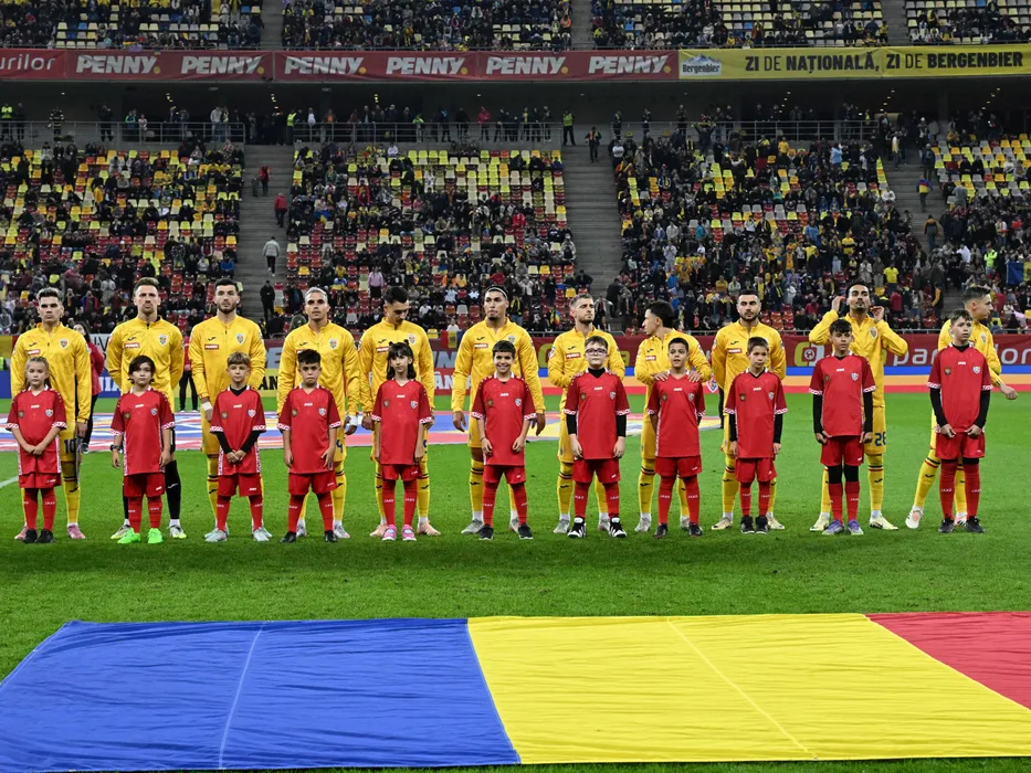 Fotbalistii romani la startul meciului amical de fotbal dintre Romania si Moldova, desfasurat pe Arena Nationala din Bucuresti, joi 9 octombrie 2025. © FOTO:Razvan Pasarica/SPORT PICTURES