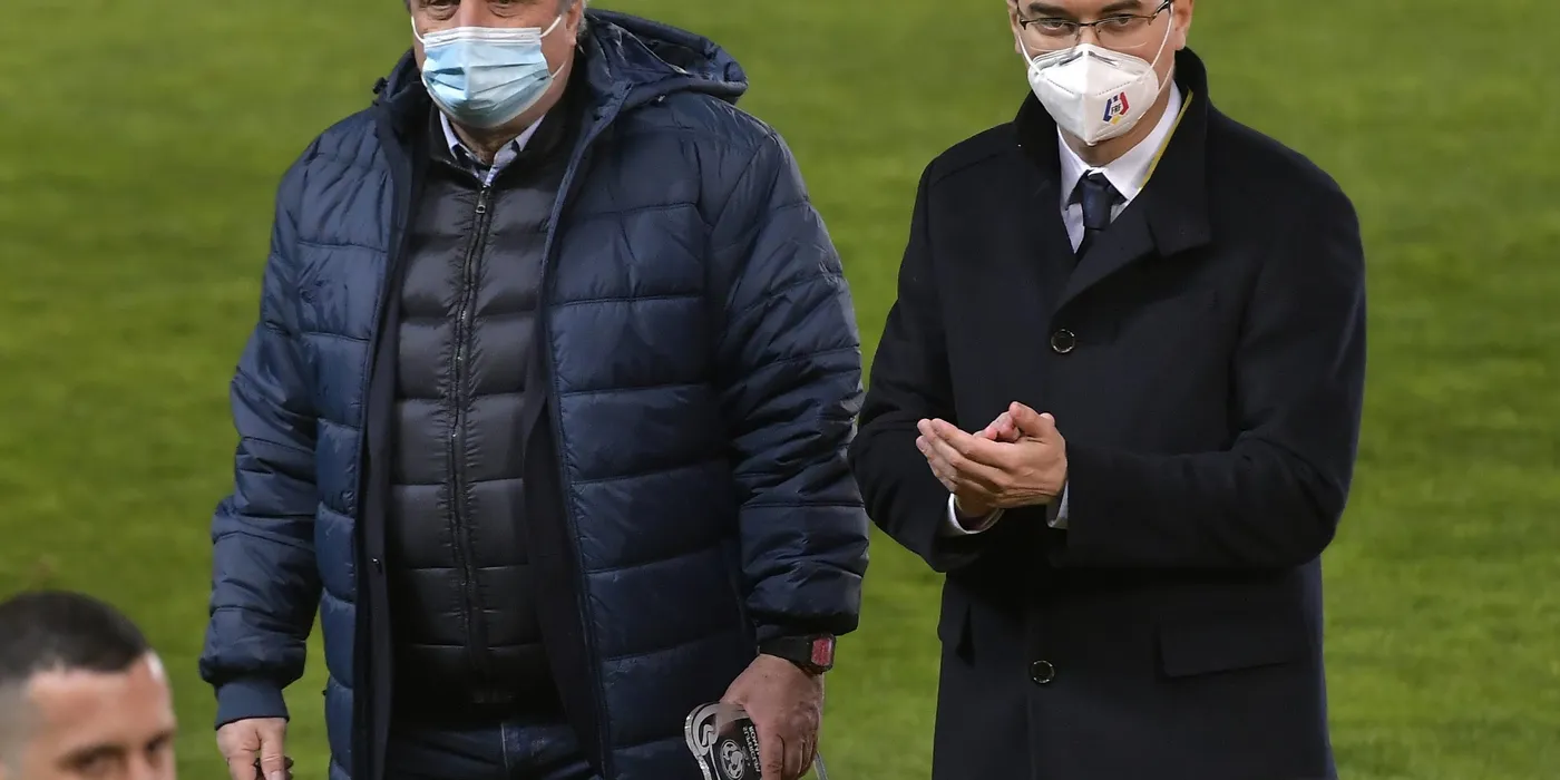 Mihai Stoichita si Razvan Burleanu la meciul de fotbal dintre CFR Cluj si FCSB, Supercupa Romaniei, desfasurat fara spectatori pe Stadionul Ilie Oana din Ploiesti, joi 15 aprilie 2021. © FOTO:Razvan Pasarica/SPORT PICTURES
